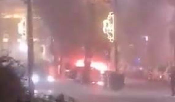 Zapaljen automobil nalazi se u Pariskoj ulici u blizini Ambasade Francuske.