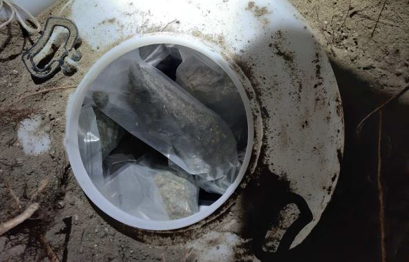 Pretresom stana i drugih prostorija, policija je, u vinogradu blizu kuće osumnjičenog, pronašla dva zakopana plastična bureta u kojima je bilo oko 15,5 kilograma marihuane zapakovane u 11 najlonskih paketa i pet papirnih vreća.