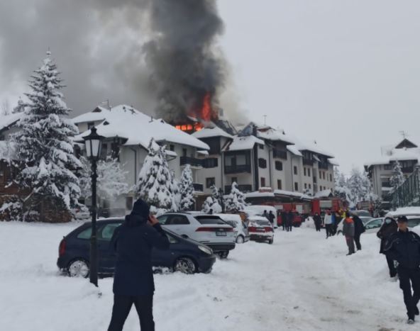 Ljudi su, na sreću, bili van soba, a vatrogasci šmrkovima pokušavaju da priđu plamenu.