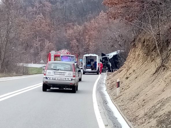 Na lice mesta brzo su stigle dve ekipe Hitne pomoći kao i vatrogasne ekipe koji su počeli da vade vozača iz kabine kamiona.