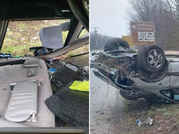Vozilo je sletelo s puta pa se isprevrtalo. Sreća u nesreći je da je samo jedna osoba lakše povređena.