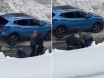 Kada su muškarci krenuli da se tuku iz automobila je izašla devojka koja je udarila jednog od mladića, a zatim je nastavila da vrišti kako bi prekinuli da tuku osobu sa kojom je bila u automobilu.