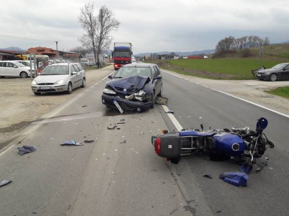 Na Ibarskoj magistrali, u selu Prislonica kod Čačka došlo je do saobraćajnog udesa kada se automobil "Reno Megan" sudario sa motorom.
