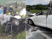 Vatrogasci su juče dva sata sekli automobil pokušavajući da iz smrskane olupine izvuku doktorovu suprugu F. B. koja je zatim sa teškim povredama prebačena i zbrinuta u valjevskoj bolnici.
