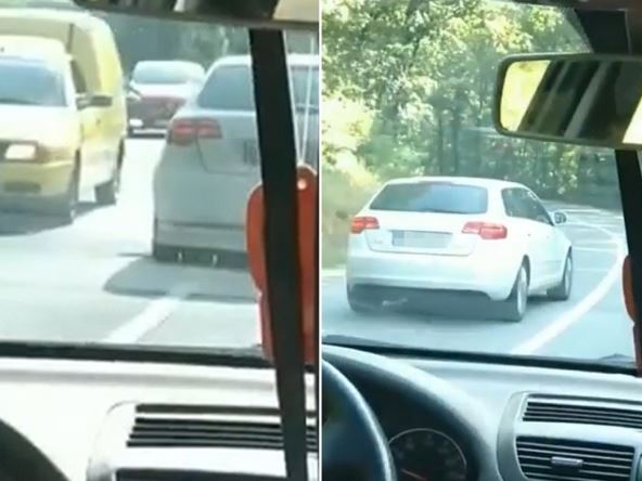 Na snimku se u jednom trenutku vidi auto koji prelazi u suprotnu traku, gde u tom trenutku nailazi auto. Sekund je delilo od udesa, koji je na svu sreću u poslednjem trenutku izbegnut.