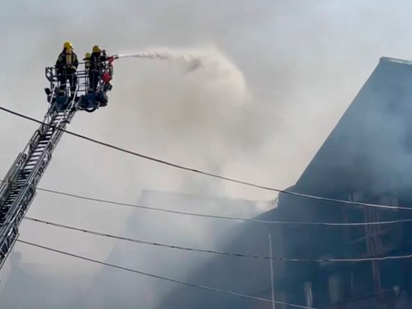 Požar je izbio na uglu Žorža Klemansoa i Dunavske, saobraćaj u tom delu grada odvija se otežano a snimci sa lica mesta pokazuju kako se vatrogasci, koji se smenjuju u gašenju, bore sa vetrom.