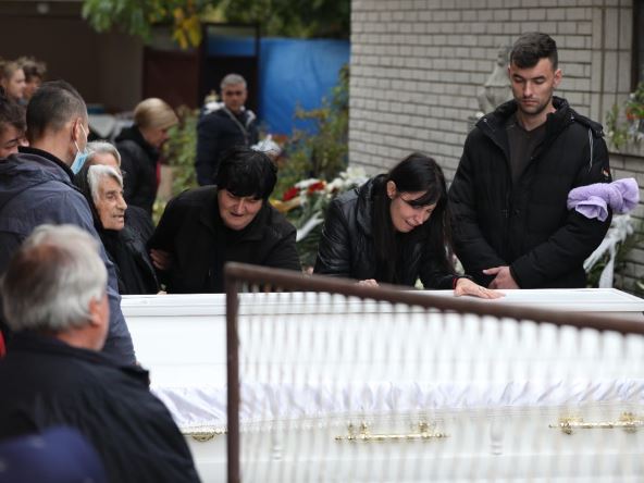 Jedna od najpotresnijih scena dogodila se u dvorištu kada su se komšije i rodbina okupili oko belog kovčega. Oni su sve vreme plakali i dodirivali ga.