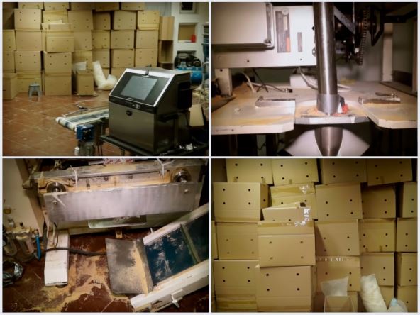 U pogonu je pronađena linija za punjenje ambalaže, štampač za štampanje na ambalaži, veća količina folije, odštampana kartonska pakovanja, kao i rinfuzni mleveni keks.