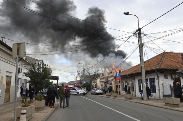 "Došlo je do niza detonacija u zapaljenom tržnom centru u Obrenovcu, verovatno zbog pirotehničkih sredstava. Odmah je naređeno da se vatrogasci povuku na bezbedno rastojanje. Dva vatrogasca prevezena su u Hitnu pomoć u Obrenovcu. U stabilnom su stanju i nalaze se na kiseoniku. Intervencija u toku", naveo je.