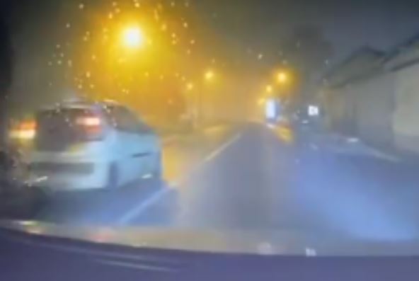 Na snimku se može uočiti kako automobil proleće kroz raskrsnicu, ne kočeći ni na sekund.