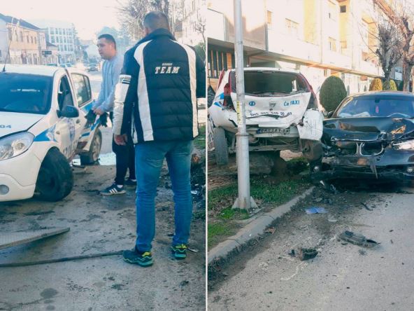 Do udesa je došlo kada je vozač koji je upravljao automobilom marke "bmv" pod još neutvrđenim okolnostima udario u taksi vozilo koje se nalazilo parkirano pored kolovoza.