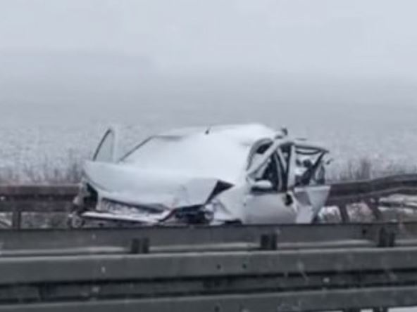 Saobraćajna nesreća desila se danas oko 10 časova u blizini Pupinovog mosta u smeru ka Zemunu. Kako se može videti na snimku, automobil je poprilično smrskan.