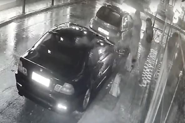 Kako se vidi na snimku, muškarci nose kišobran, najverovatnije kako bi onemogućili da im kamere snime lica.