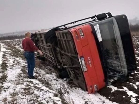 Autobus je sleteo i prevrnuo se u kanal pored puta. Na svu sreću, povređenih nije bilo.