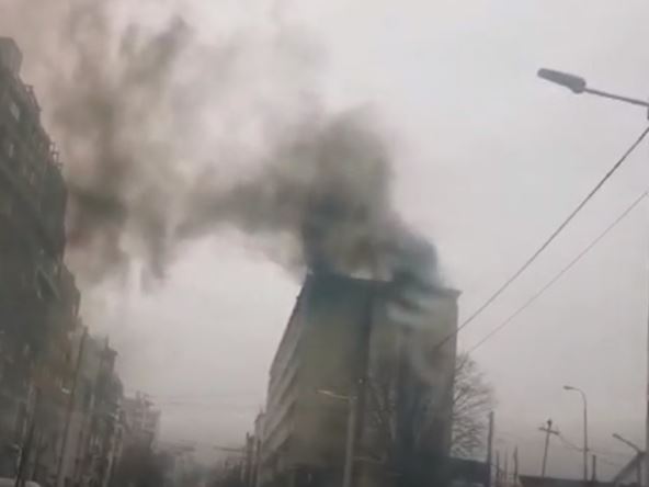Iznad zgrade izvija se gust, crn dim a vatra je, čini se, buknula na samom vrhu zgrade.