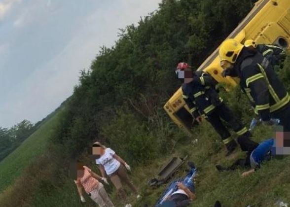 Kako se vidi na prvom snimku objavljenom na 192.rs, radnici iz autobusa koji je izleteo sa puta leže, drže se za glavu. Hitna pomoć prilazi i pomaže svakom od njih.