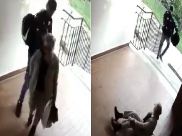 Jadna žena od siline neočekivanog udarca pada na bok i dočekuje se rukama na zemlji, a ogrebala se i na zid prilikom pada. Muškarac se sagnuo, pokupio njenu torbu i brzo se udaljio na licu mesta. Nije znao da se sigurnosna kamera nalazi tačno iznad njega i ona je zabeležila ceo događaj.