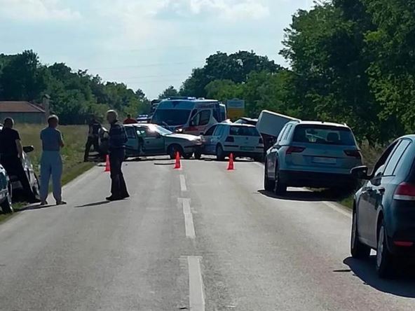 U udesu je učestvovao jedan kombi i šest putničkih vozila. Jedan automobil je završio u njivi pored puta.