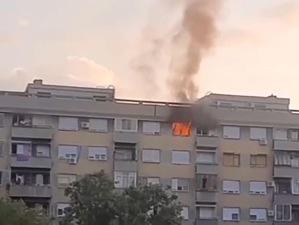 U jednoj zgradi u Ulici Vojvode Stepe u Beogradu izbio je požar. Vatra kulja kroz prozor stana u stambenoj zgradi.