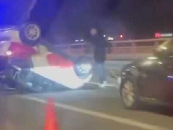 U večernjim satima, na mostu "Gazela", u smeru ka Novom Beogradu, večeras se dogodila saobraćajna nezgoda kada se jedan automobil prevrnuo na krov, prenosi Instagram stranica 192_rs.