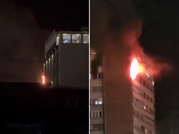 Na snimcima građana koji su se zatekli u blizini, vidi se ogroman plamen i gust dim koji kuljaju sa najviših spratova solitera.