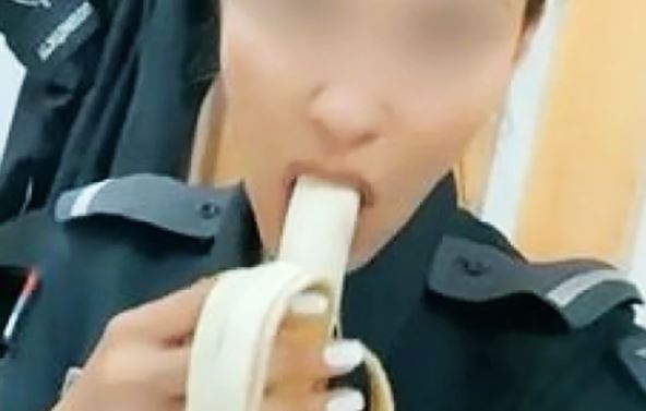 Na jednom od njih vidi se crnokosa devojka u uniformi polaznika Centra za osnovnu policijsku obuku (COPO) u Sremskoj Kamenici kako u WC-u oralno zadovoljava kolegu. Na još jednom snimku vidi se ova devojka kako simulira oralni odnos sa bananom u svlačionici u COPO.