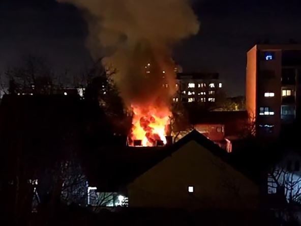 Veliki požar izbio je večeras u Ugrinovačkoj ulici u Zemunu. Kako je potvrđeno "Blicu", zapalio se pelet u odvojenoj kotlarnici od stambene kuće.