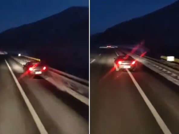 Nije poznat uzrok ovako rizične vožnje. Snimak je nastao iz autobusa koji je bio iza automobila.
