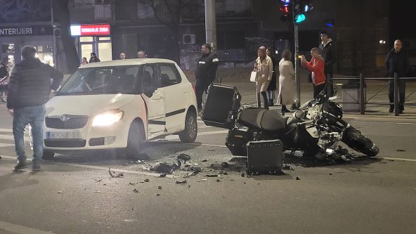 Večeras je došlo do teške saobraćajne nesreće u centru Beograda. U Ulici Džordža Vašingtona sudarili su se automobil i motocikl.