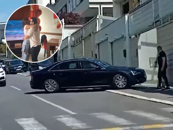 U kući ga je dočekala supruga, a ovo je ekskluzivna slika tog dočeka - Duško je dobio snažan zagrljaj i poljubac. Na fotografiji se vidi i da mu je stavljena nanogica. U krupnom planu su i crveni baloni kao deo dobrodošlice.