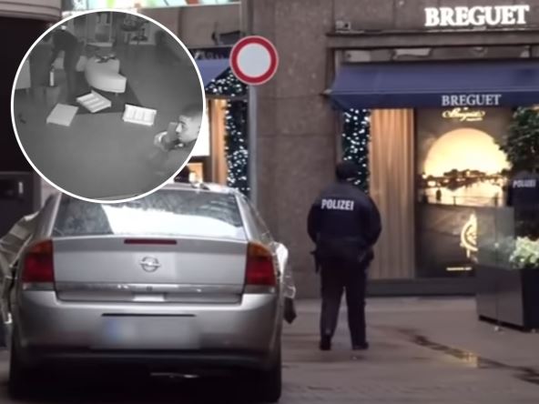 Na snimcima sa sigurnosnih kamera koje su obišle svet vidi se kako potom trojica maskiranih muškaraca izlaze iz auta, uleću u zlataru sa razbijenim izlogom, a zatim izlaze za manje od jednog minuta sa dva džaka puna nakita. Procenjeno je da je njihov ulog vredeo više od deset miliona evra! Pljačkaši su uspeli da pobegnu uprkos brojnim policajcima koji su odmah krenuli u poteru.