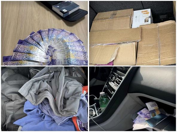 Mada su prijavili samo lični prtljag i dozvoljeni iznos gotovog novca, carinici su detaljnim pregledom automobila, u servisnoj knjižici, koja se nalazila u kaseti ispred suvozačkog sedišta, pronašli i 20.000 neprijavljenih švajcarskih franaka.