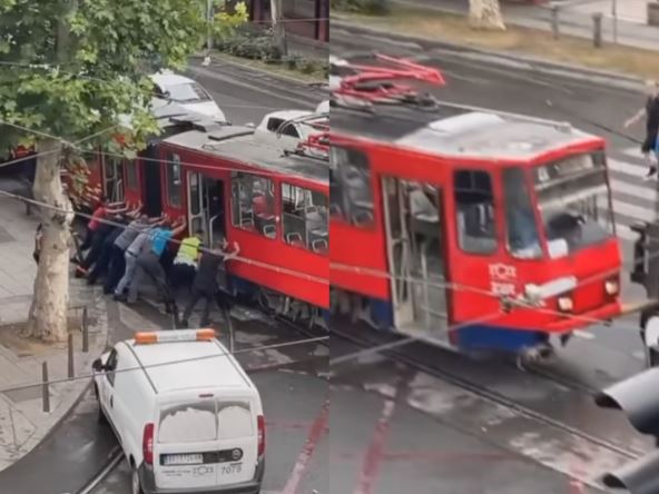 Na snimku koji kruži društvenim mrežama, vidi se kako žena, policajac i nekoliko muškaraca guraju i ljuljaju tramvaj pokušavajući da ga vrate u šine. Ispod objave su usledili i komentari građana, a jedan od njih je bio da "ovo postoji samo u Srbiji".