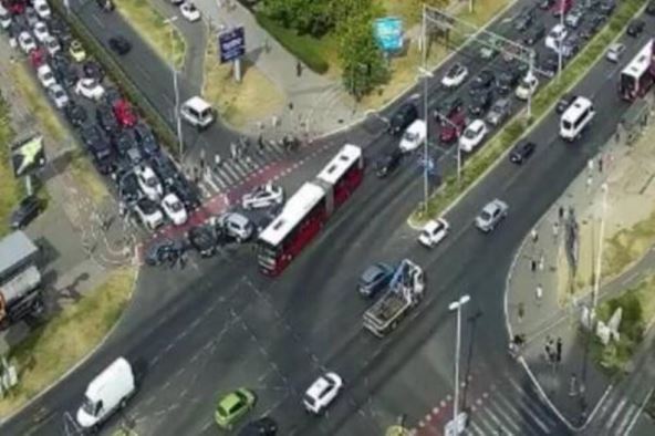 U stravičnom lančanom sudaru koji je dogodio danas oko 16 časova na raskrsnici kod TC Ušće, učestvovalo je čak četiri vozila, a jedno je potpuno smrskano.