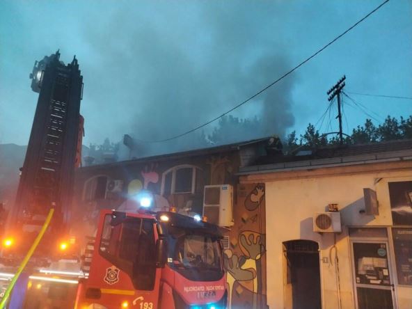 Na licu mesta ustanovljeno je da gori sprat i krov lokala na površini od oko 150 kvadratnih metara. Požar se proširio na dve manje stambene jedinice, levo i desno od lokala koji gori.