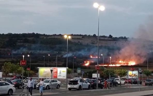 Sumnja se da se zapalilo rastinje. Gust oblak crnog dima se brzo širi, a uzrok požara nije poznat.