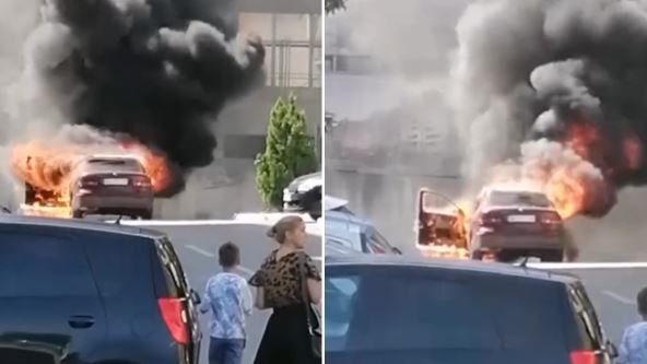 Snimak požara pojavio se na "Instagram" profilu "Serbialive_Beograd". Kako se vidi na njemu, plamen bukti iz automobila, a gust crni dim kulja na sve strane.