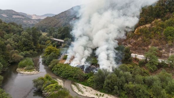 Tokom popdnevnih sati na teritoriji opštine Lučani, na samom ulazu u gradsko područje na obali reke došlo je do požara, kada se zapalila velika površina pod niskim rastinjem.