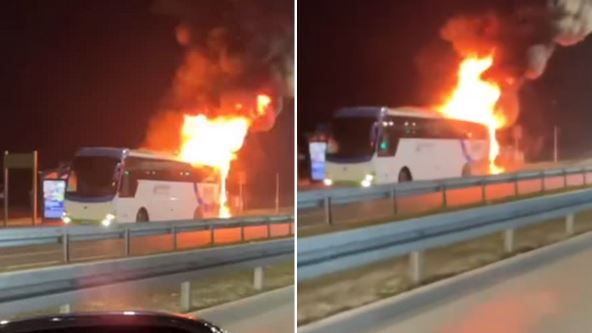 "Požar na autobusu prevoznika iz Čačka, na novom auto-putu Surčin-Novi Beograd u blizini kružnog toka", navodi se u opisu videa.