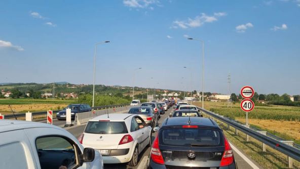 Vatra je u potpunosti progutala kamion, a širi se ogroman crni dim. Saobraćaj je blokiran i još uvek nije poznato kako je došlo do požara i da li ima povređenih.