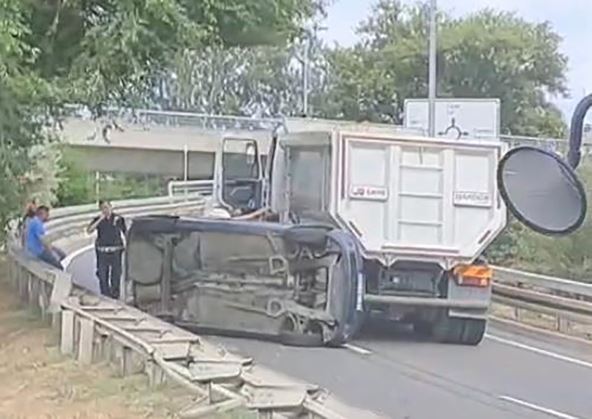 Danas popodne dogodila se teška saobraćajna nesreća na Mostu na Adi u Beogradu kada je došlo do sudara automobila i kamiona, javlja "Kurir". Pored prevrnutog vozila bio je kamion.