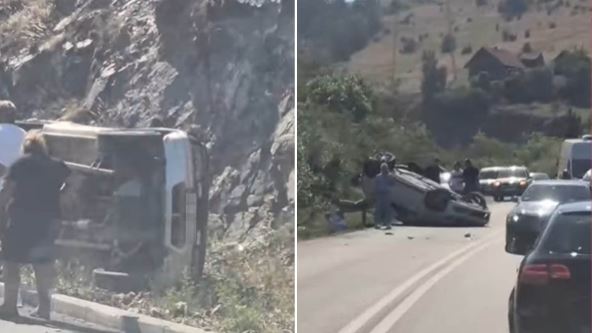 Prema prvim informacijama, dva automobila su nakon sudara završila prevrnuta na krov.