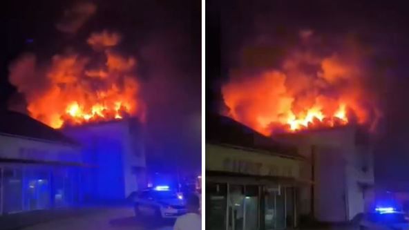 Veliki požar izbio je večeras u Petrovcu na Mlavi. Zapalio se kineski tržni centar.