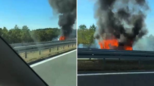 Kako se vidi na snimku vatra je potpuno progutala vozilo, a crni gusti dim vidi se iz daljine. Zbog incidenta se očekuju gužve u narednom periodu. Za sada nije poznato kako je do požara došlo, šta je razlog nesreće i da li ima povređenih.