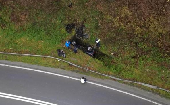 Na fotografijama sa lica mesta, vidi se da se vozilo prevrnuto nalazi u betonskom propustu. Vozilo je upalo bočno i ostalo zaglavljeno na mestu saobraćajne nesreće.