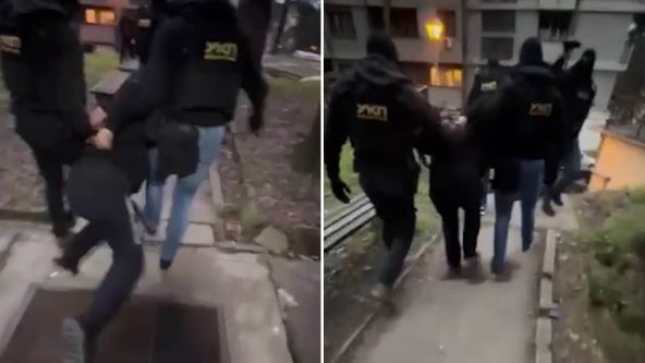 Kako se može videti na snimku hapšenja, osumnjičenom su lisice stavljene na ruke u Rakovici, nakon čega je odmah sproveden u pritvor.