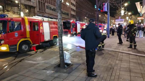 Veliki požar izbio je večeras na Terazijama u centru Beograda i prema saznanjima "Telegrafa", muškarac je istrčao crn od dima iz zgrade u kojoj je izbio požar. Prema nezvaničnim saznanjima pomenutog portala, požar je izbio u stambenoj zgradi blizu Palate Albanije.