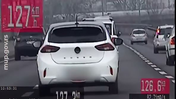 Oko 11 časova zaustavljena je tridesettrogodišnja A. S., koja se upravljajući vozilom marke "Opel" kretala brzinom od 127,3 kilometra na čas.