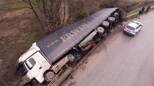 Na starom putu između Čačka i Kraljeva, u mestu Viljuša, došlo je do saobraćajne nezgode kada je vozač šleper izgubio kontrolu nad teretnjakom, sleteo sa kolovoza i prevrnuo se na bočnu stranu.