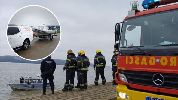 Na licu mesta se nalaze pripadnici vatrogasaca, sa čamcem i brodom na Dunavu.